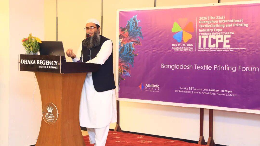 会议伊始,Textile Focus 从编 Mohammad Ashraful Islam 上台致辞,对列位嘉宾的到来暗示强烈热闹欢送。他暗示,做为 2026 ITCPE广州纺博会的计谋合做方,很是侥幸牵头组织本次勾当,也十分愿意借帮《Textile Focus》的行业影响力,向孟加拉纺织制衣、印花及绣花同仁全面推广 2026ITCPE广州纺博会的优良资本取展会亮点,帮力中孟纺织制衣、印花及绣花财产深化交换、共赢成长。行业内的多位专家和企业代表环绕手艺立异、数字化转型取可持续成长等环节议题展开了深度对话。东莞市彩韵新材料无限公司的黄仲瑜先生率先以《水性印花系统全面处理方案以及新工艺引见》为题进行分享。他细致引见了公司普遍的营业范畴,涵盖数字印刷油墨系列、特效系列、水性PU油墨系列等多个系列产物,并提出环保材料替代保守化学品的可行性径,为行业的绿色成长供给了新思。这一分享不只展示了中国企业正在环保手艺方面的积极摸索,也为孟加拉纺织制衣、印花及绣花财产正在环保转型方面供给了无益的自创,拉开了此次交换的序幕。